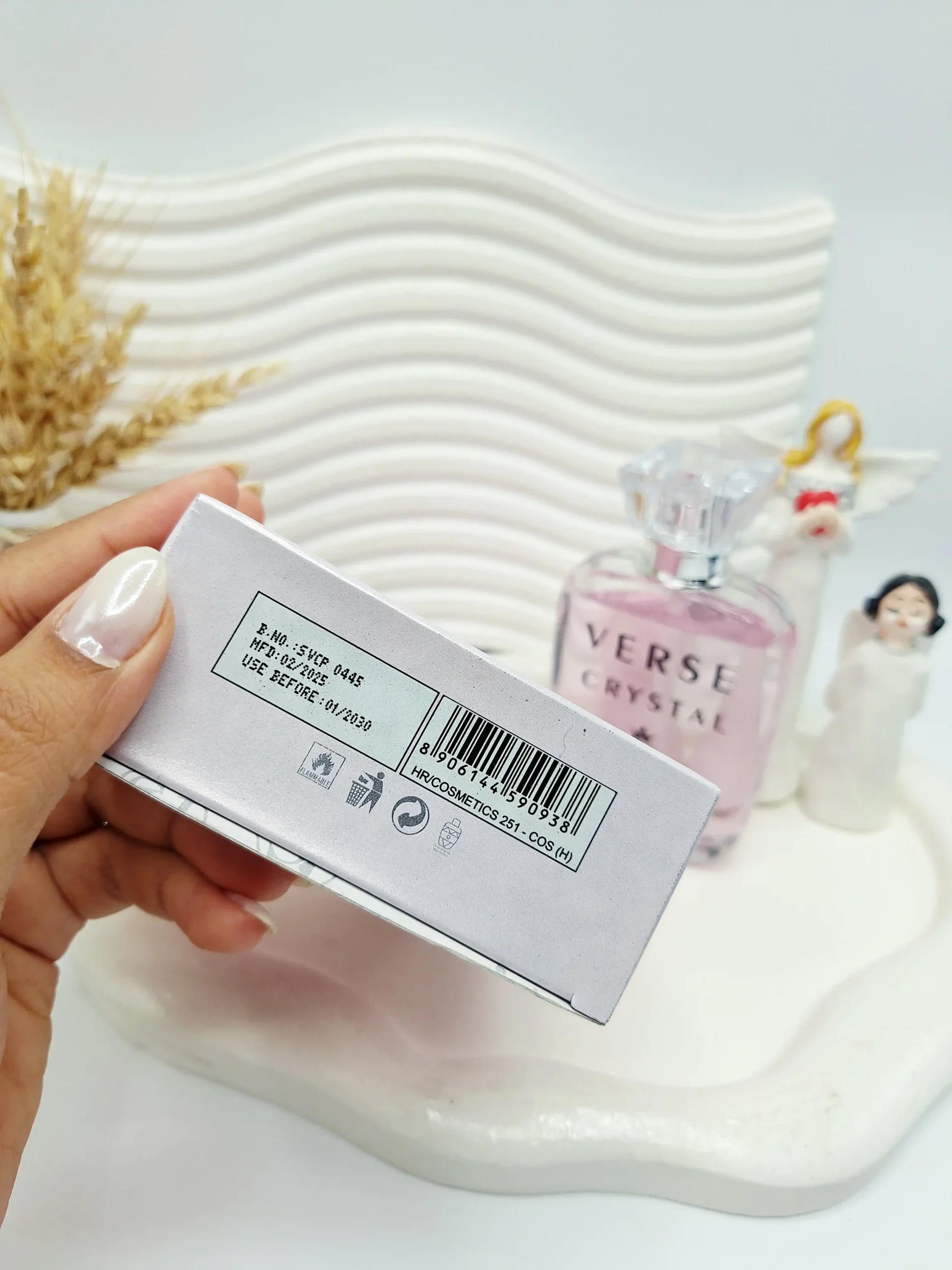 ادکلن Verse Crystal عطری زنانه، شیک و جذاب با رایحهای ملایم، گلدار و شیرین است که حس لطافت، اعتمادبهنفس و جذابیت زنانه را به بهترین شکل منتقل میکند 🌸✨