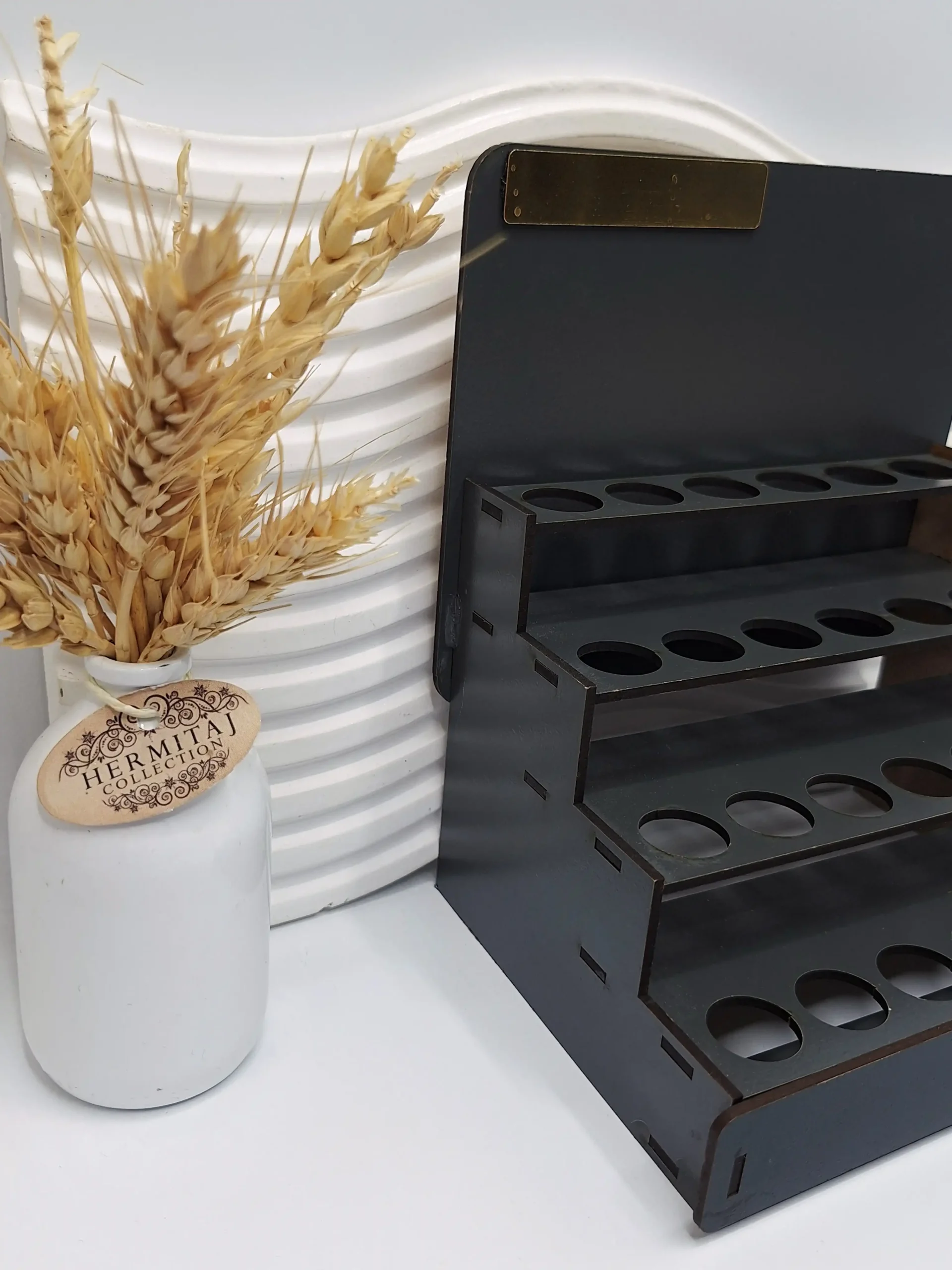 با جنس چوب مقاوم، این استند سبک اما مستحکم است و میتواند بطریهای عطر، لوسیون و سایر لوازم کوچک آرایشی را بهصورت منظم و مرتب نگه دارد 🌟🫦.