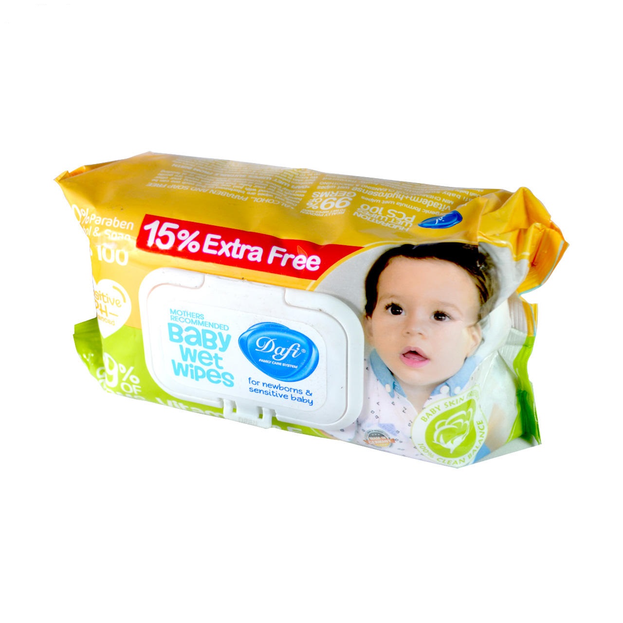 دستمال مرطوب پاک کننده کودک دافی مدل اکسترا بسته زرد 100 عددی