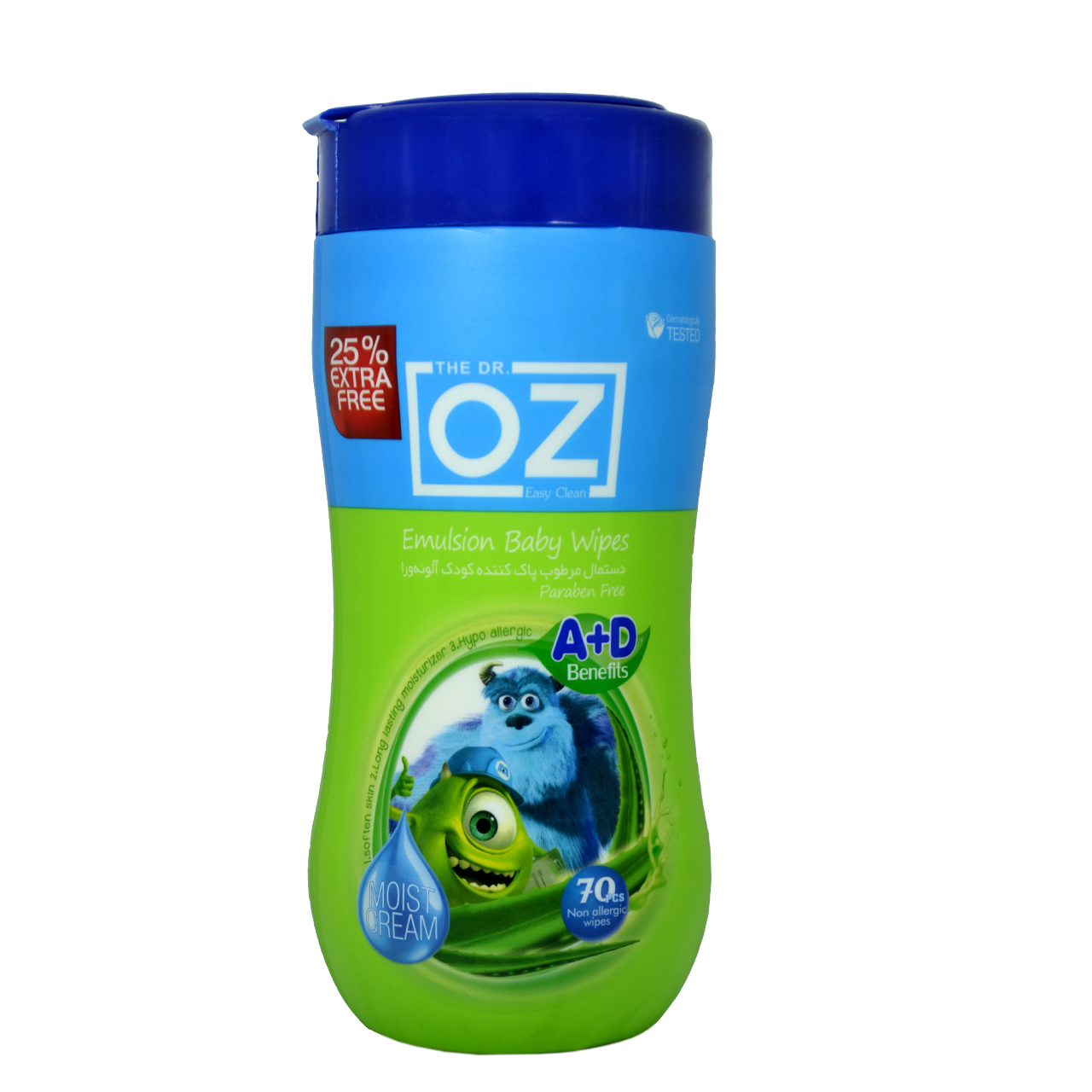 نکته قابل توجه درباره دستمال مرطوب کودک از این است که فاقد صابون و پارابن است که به پوست حساس کودک آسیبی نمیرساند. دارای 70 عدد در یک بسته بندی است. درب پلاستیکی این محصول به راحتی باز و بسته میشود و این موضوع از خشک شدن دستمال حفاظت میکند.