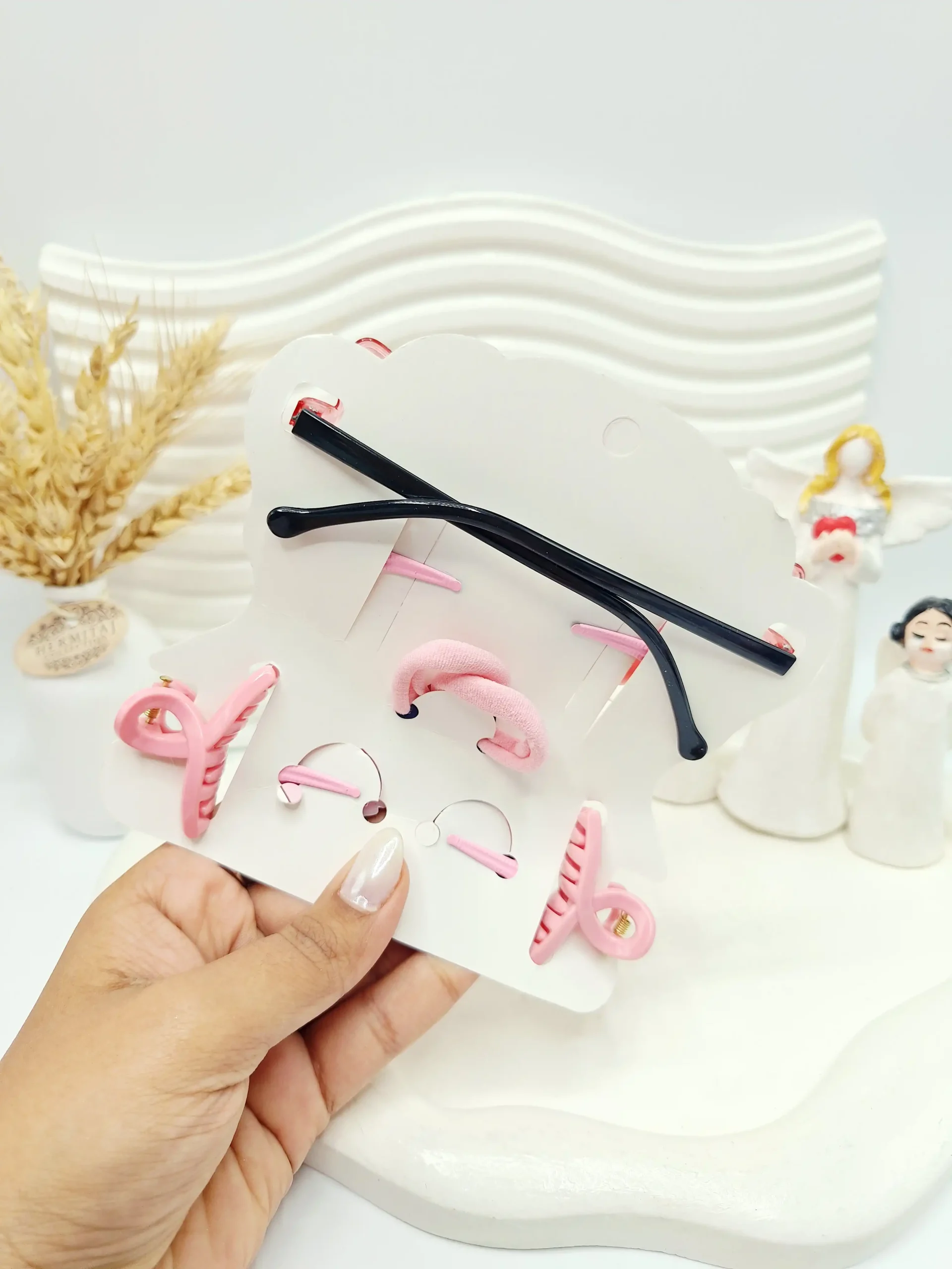 ✨ شامل یک عدد عینک قلبی، کش مو و کلیپس و پنس مو و گیره مو