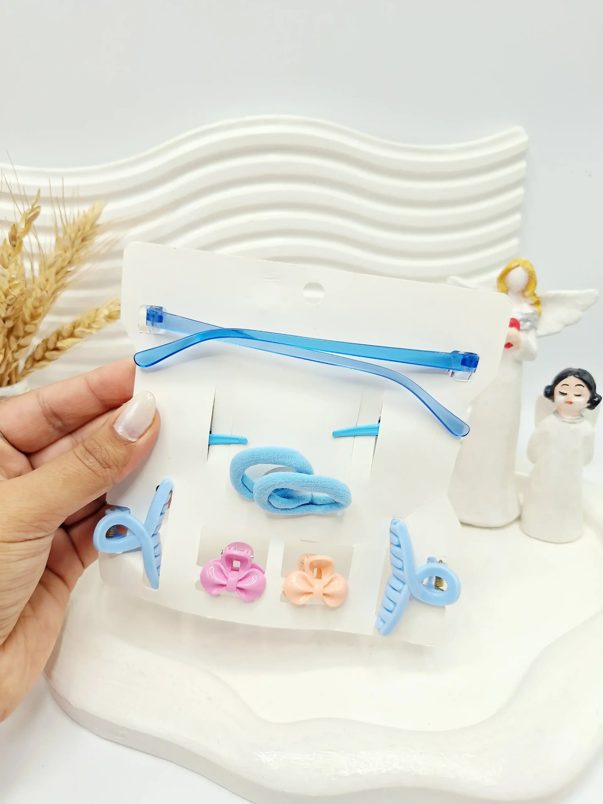 ✨ شامل یک عدد عینک قلبی، کش مو و کلیپس و پنس مو و گیره مو