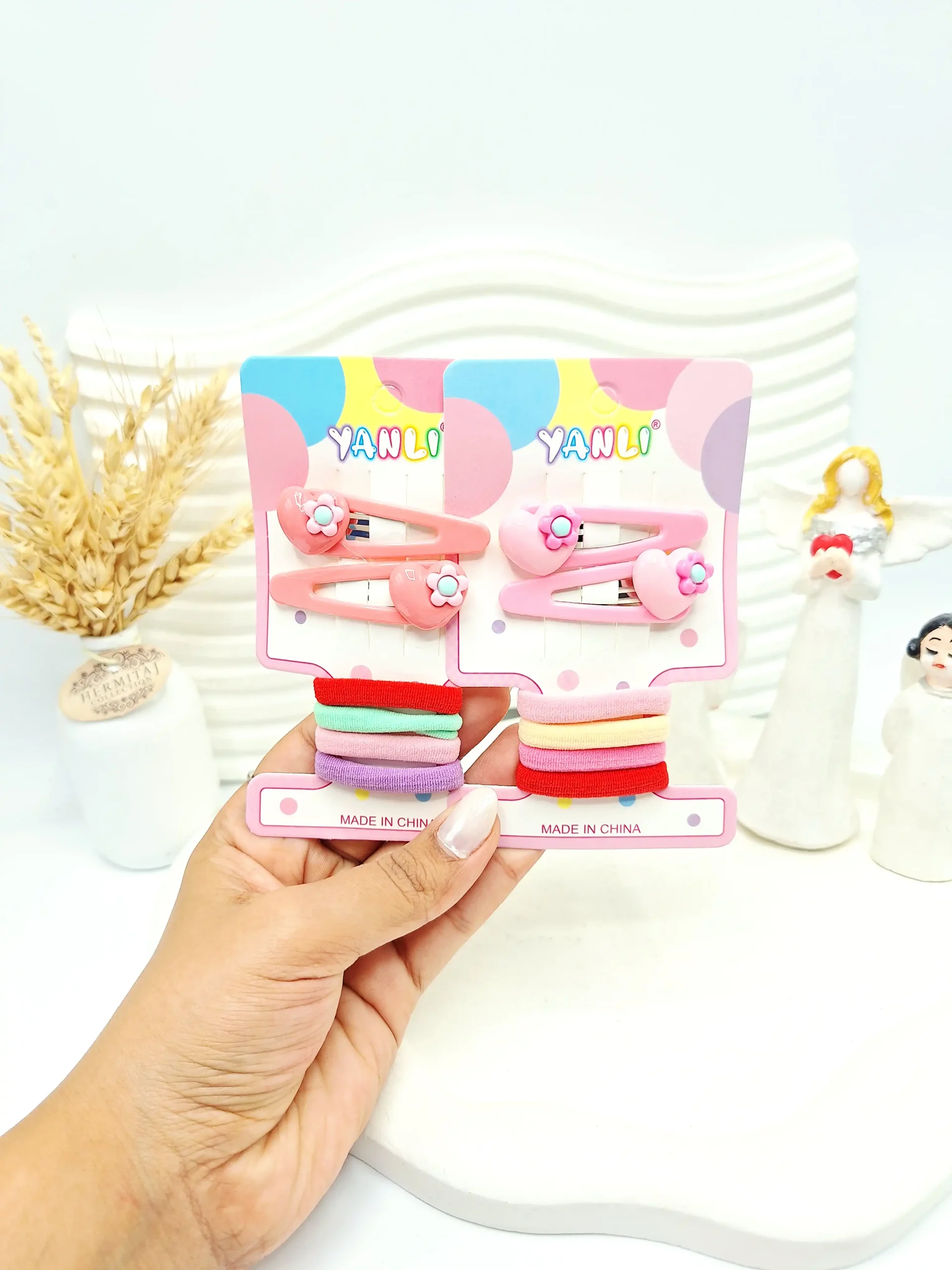 این ست با طراحی فانتزی و قلبی، نهتنها کاربردی بلکه زیبایی خاصی به استایل موهای شما میبخشد 🌸