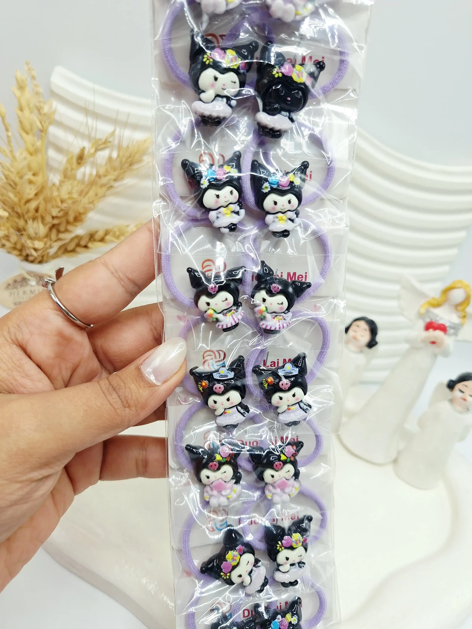 ست 10 تایی کش مو 2 تایی بنفش طرح کرومی مشکی