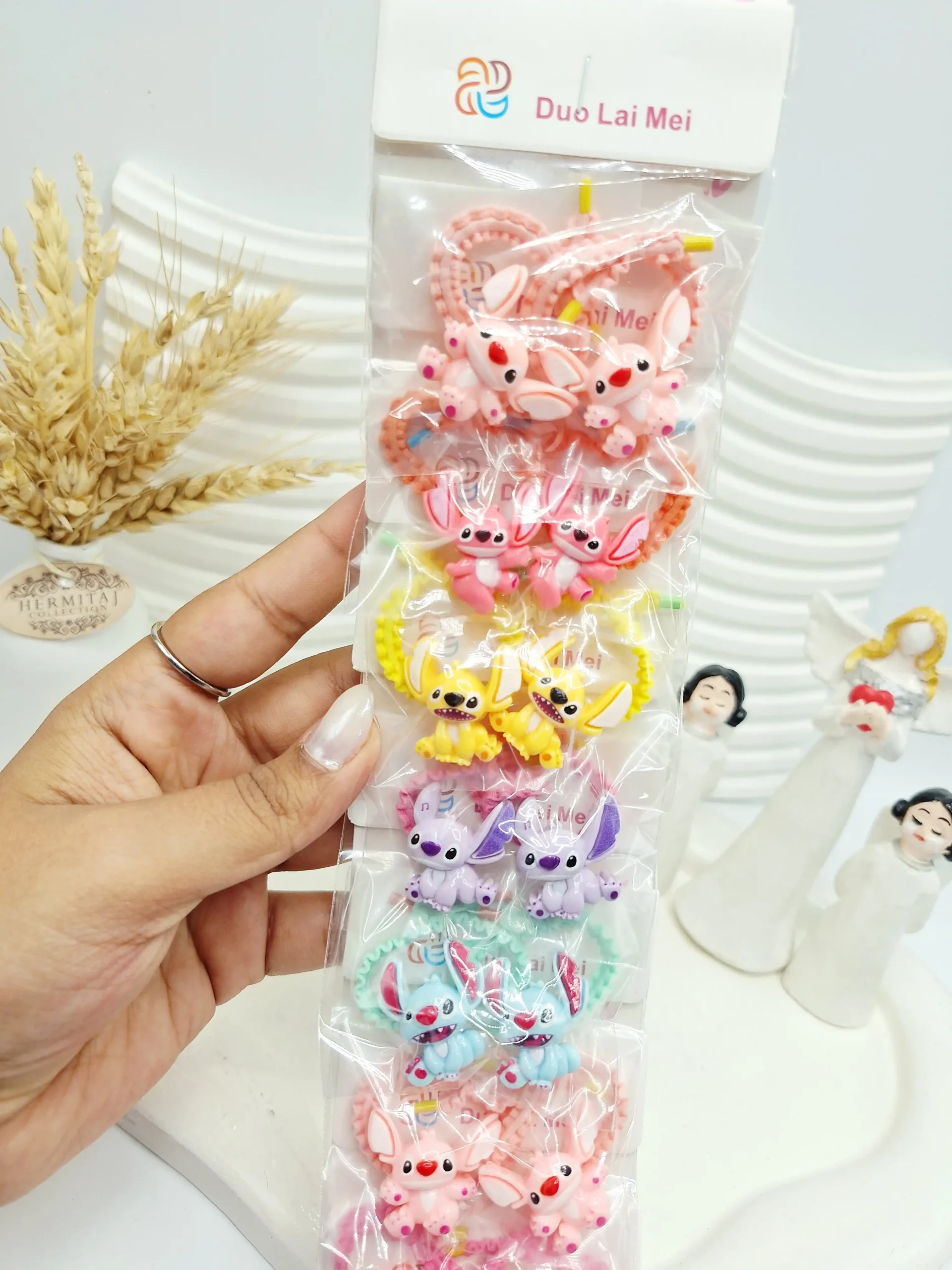 ✨🌸ست 10 تایی کش مو ۲ تایی طرح استیچ، شادی و رنگین‌کمانی از زیبایی را به هر مدل موی دخترانه اضافه می‌کند 🌸✨