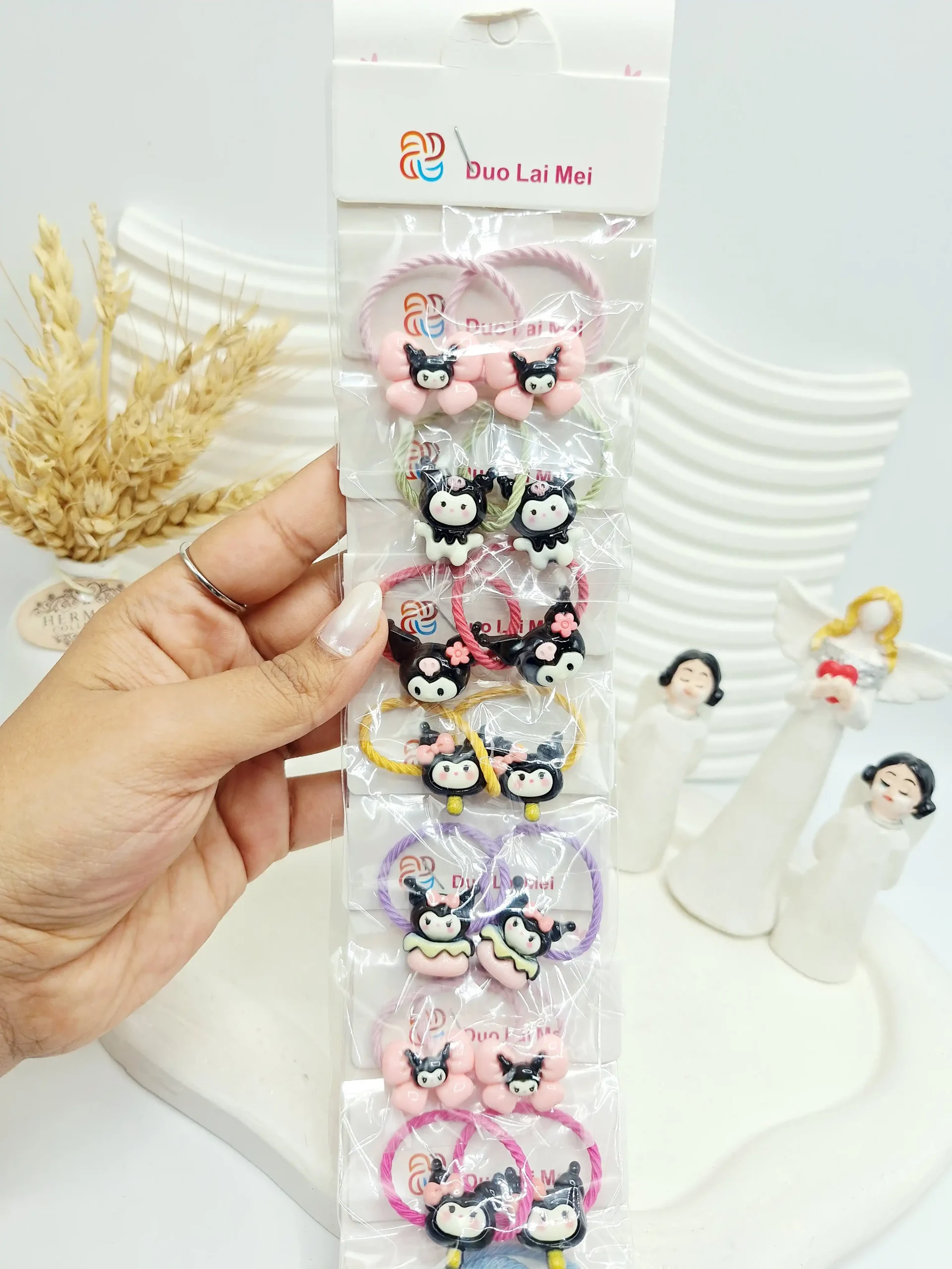 ست 10 تایی کش مو 2 تایی بنفش طرح کرومی مشکی