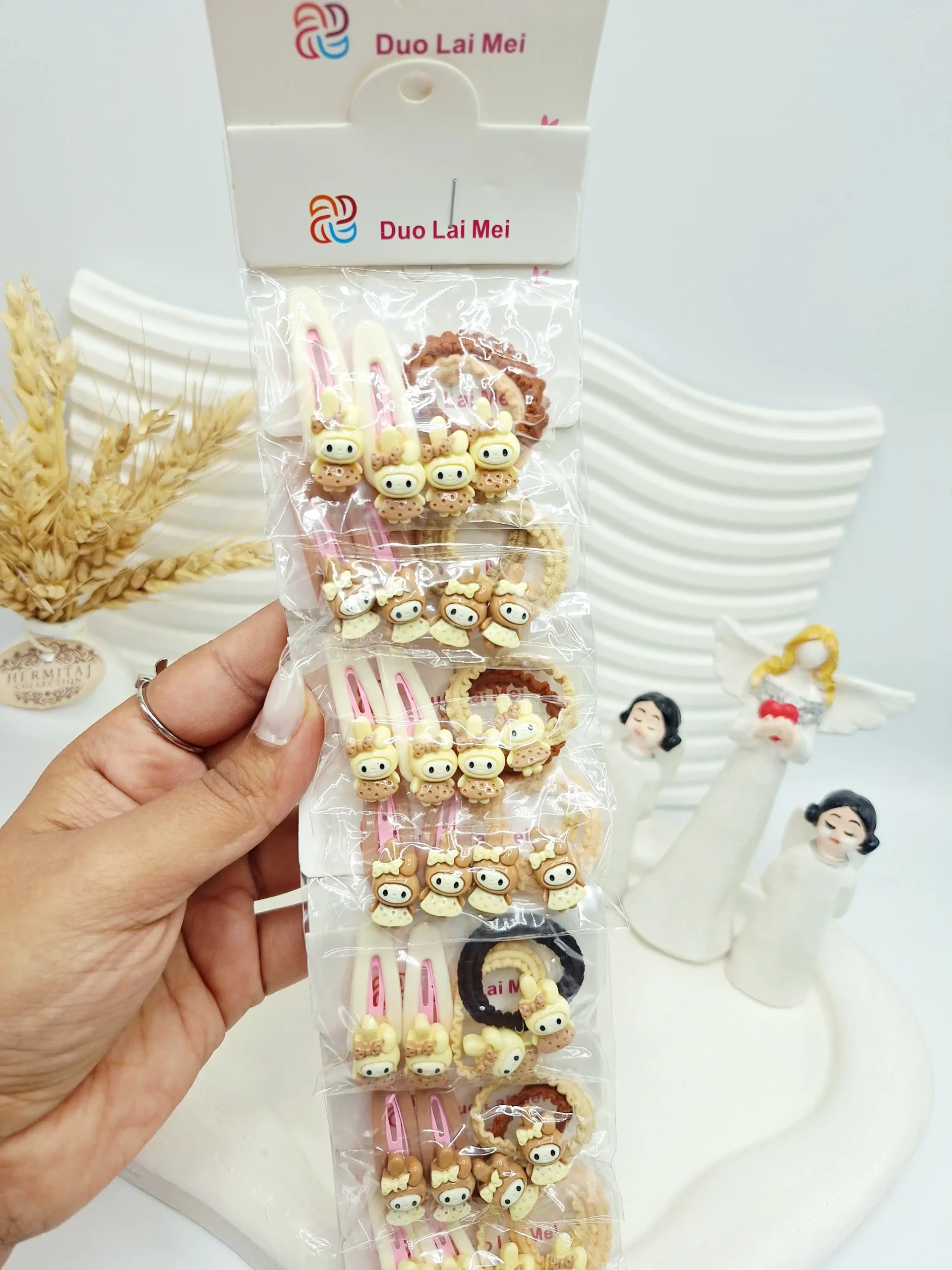 ست 10 تایی کش و پنس مو دخترانه کرومی رنگ کرم