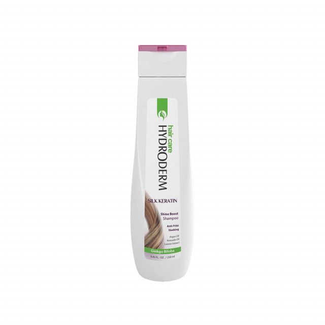 شامپو براق کننده و ضد وز هیدرودرم مدل کراتین و ابریشم حجم 250 میلی لیتر