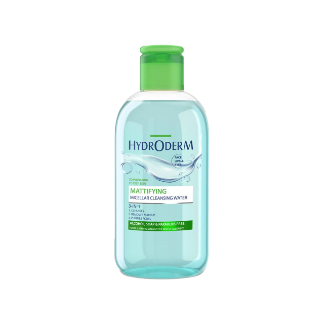 میسلار واتر هیدرودرم مدل Mattifying محصولی سه کاره است که ضمن پاک کردن آلودگی ها و لوازم آرایشی، پوست را مات کرده، سایز منافذ را کاهش داده و چربی اضافه آن را کنترل می کند. این محصول برای پوست های چرب، مختلط و جوش دار فرموله شده و در یک مرحله، مواد آرایشی، گرد و غبار و آلودگی ها را از روی پوست پاک خواهد کرد. میسلار واتر هیدرودرم فاقد الکل، پارابن و مواد صابونی بوده، برای صورت، چشم و لب قابل استفاده است و ضمن تقویت پوست، آن را با طراوت خواهد کرد.