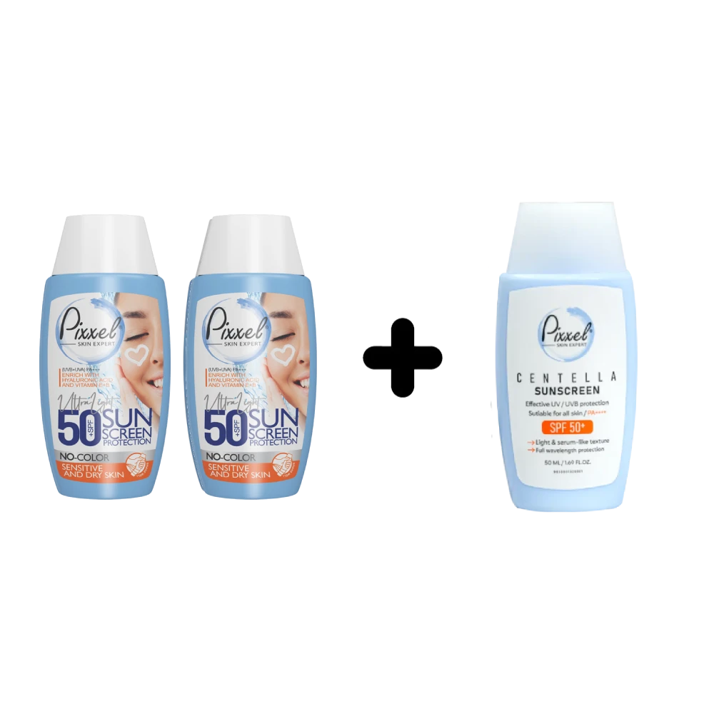 پک کرم ضد آفتاب پوست خشک و سنتلا پیکسل (2+1 هدیه)