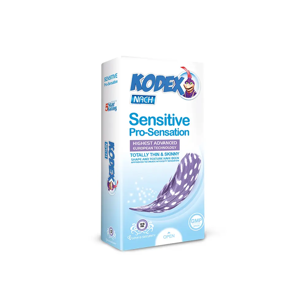 کاندوم کدکس مدل Senditive Pro-Sensation یکی از انواع گوناگون برند کدکس است که در زمینه تولید کاندوم بسیار مطرح و شناخته شده است. بسیاری از مصرف کنندگان خرید کاندوم کدکس را اطرافیان خود پیشنهاد کرده اند. در هنگام ارتباط ممکن است درد ناشی از مقاربت از ایجاد یک رابطه لذت بخش جلوگیری کند. این کاندوم حاوی لوبریکانت و روانکننده است که به افزایش لذت جنسی کمک کرده و درد مقاربت که به سبب خشکی ناحیه واژینال برای خانم های ایجاد میشود را آسان تر و قابل تحمل تر میکند. بهتر است برای مراقبت و رعایت بهداشت جنسی از وسایل با کیفیت و بدون ایجاد حساسیت استفاده کرد. مدل ضد حساسیت کدکس از حساس شدن ناحیه تناسلی جلوگیری کرده و نگرانی ها را بابت ایجاد بیماری ها و بارداری های ناخواسته از بین برده است. نازکی ضخامت کاندوم کدکس یکی دیگر از ویژگی های منحصر به فرد این برند است که به دلیل شفاف بودن مناسب افرادی است که میخواهند احساس گرما را به سرعت به شریک زندگی خود منتقل کنند که این موضوع افزایش لذت ارتباط را نیز به همراه دارد. همچنین آنقدری مقاوم و محکم است که پاره نمیشود.