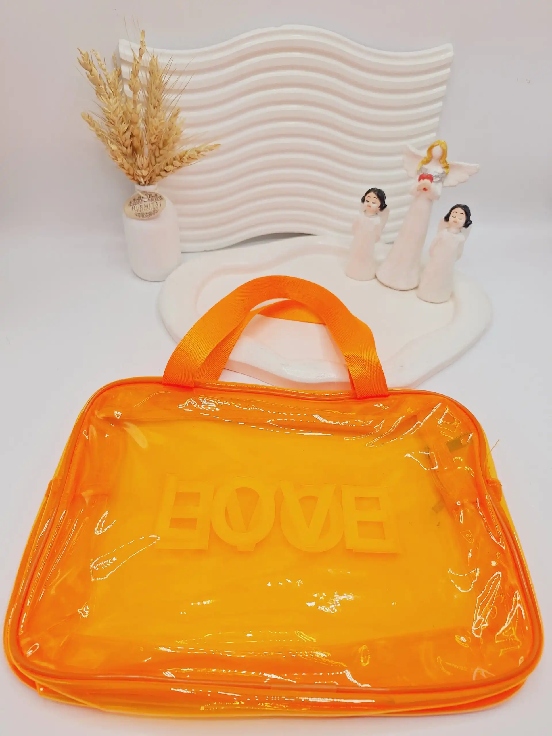 کیف لوازم آرایشی سایز بزرگ مدل LOVE (رنگ نارنجی)